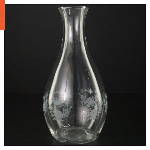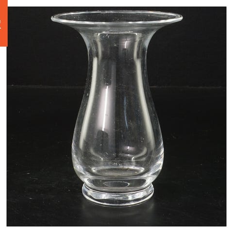 Vasen er lavet af klart glas og har en høj, slank form med en bred åbning. Den er velegnet til lange blomsterstængler eller dekorative grene. Undersiden af vasen har en etiket med en stregkode og nummeret 13750. Størrelsen er 40x12 cm.