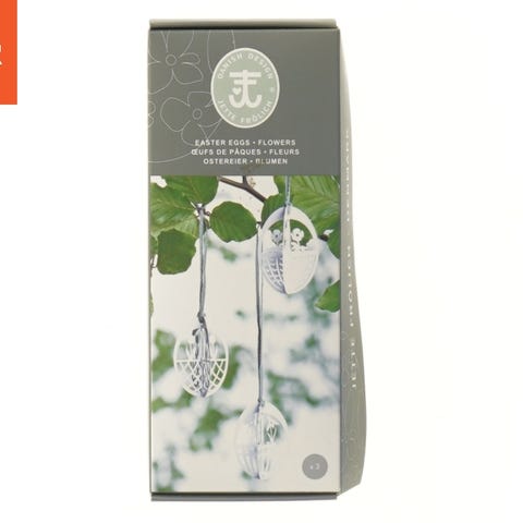 Sættet indeholder tre dekorative påskeæg med blomstermotiv, produceret af Jette Frölich. Øg af metal er designet til at hænge og dekorere dit hjem eller udendørs miljø. Hvert æg måler 6 cm og er perfekt til at tilføje en elegant touch til påskeudsmykningen. Der er detaljerede blomsterudskæringer, der giver æggene et unikt og kunstnerisk udseende.