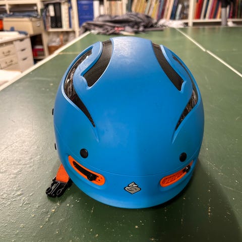 Denne skihjelm fra Bula er i farven lyserød med et blomstret og geometrisk mønster. Hjelmen har flere ventilationshuller og justerbare remme for sikker pasform. Udvendigt er der en synlig skramme, men den ser stadig robust ud og kan yde den nødvendige beskyttelse. Måler 25x20 cm.