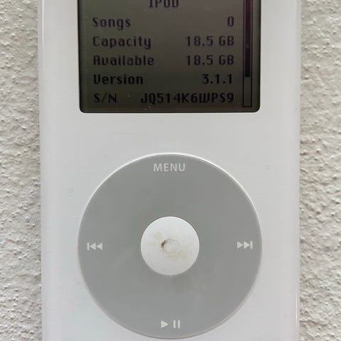 Apple iPod Classic musikafspiller med 60 GB lagerkapacitet i hvid farve. Enheden har klik-hjul til navigation, farveskærm og bagcover i metal. Afspiller musikfiler fra den interne harddisk og tilsluttes via 30-pin dock-stik. Øverste kant har hovedtelefonudgang, hold-knap og stik til fjernbetjening/tilbehør. Egnet til opbevaring og afspilning af større musiksamlinger og lydfiler.