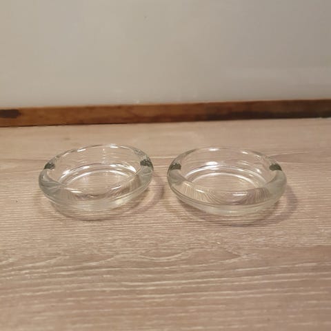 Det er et rundt askebæger lavet af glas med en glat overflade. Det fremstår klart og transparent i designet. Størrelsen er 7,5 cm i diameter. Askebægeret har en diskret form, der passer ind i forskellige indretninger. Der er en stregkode på bunden.