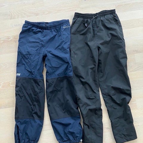 Regnbukser med elastisk talje og justerbare benåbninger. Logo på forsiden. Materialet er vandafvisende og letvægtigt.