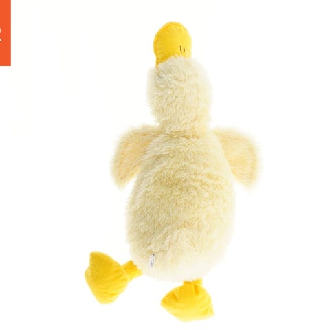 En blød bamse med lange ører, der måler 43 cm i højden. Den har en lys farve og er designet som en kanin med kort, blød pels. Perfekt som krammedyr og legetøj til børn.
