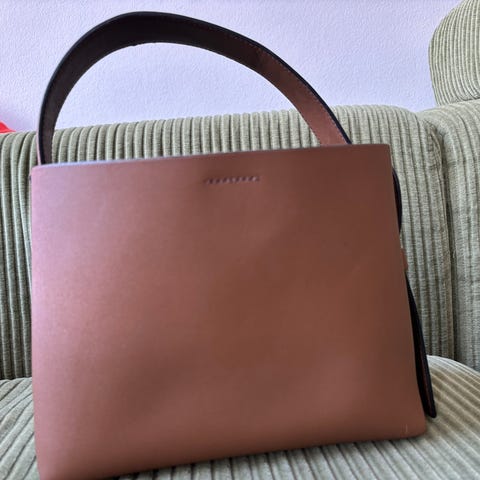 Mismo taske i stof til kvinde. Tasken er mørkeblå med brune læderhanke og aftagelig, justerbar skulderrem. Den har lynlåslukning øverst og et enkelt, minimalistisk design. Egnet som hverdagstaske eller arbejdstaske med plads til computer,personlige ejendele som pung, telefon og nøgler. Materialet er kraftigt stof med detaljer i læderlook.