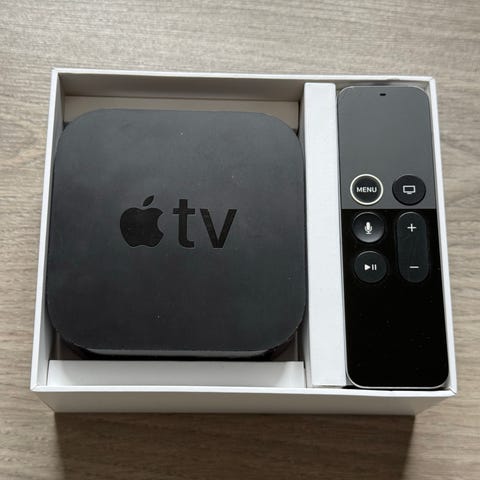 Apple TV 4K (1.gen) fungerer fint. Fjernbetjening aldrig brugt.