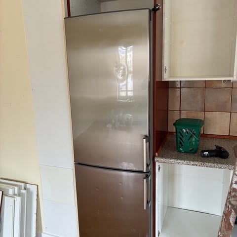 Nederst er der 111 l frysedel med tre skuffer. Indvendig belysning og elektronisk betjening med indikatorlamper. Velegnet til almindeligt køkkenbrug med kombineret køl og frys i ét skab.