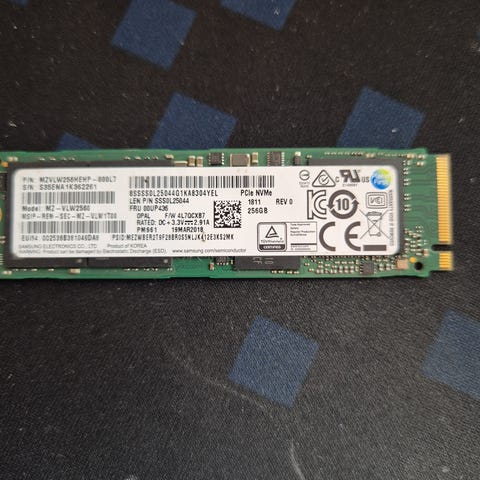 Sælger en Samsung NVMe SSD på 256GB.