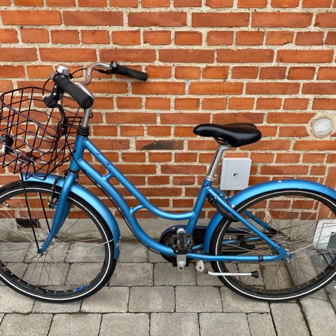 Cykel købt i 2023. 7 gear, bagagebærer, cykelkurv og cykellygter monteret. Kvittering og servicehæfte haves. CcMeget fin stand men lette skræmmer (se billeder) - støtteben har altid haft svært ved at holde cyklen.