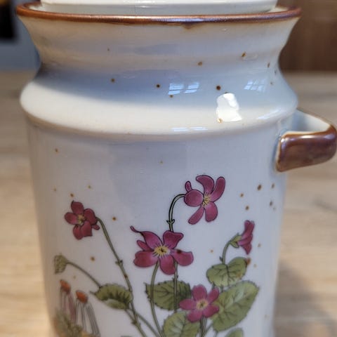 Fajance, STOR 4-kantet KRUKKE m LÅG, Flora Patricia