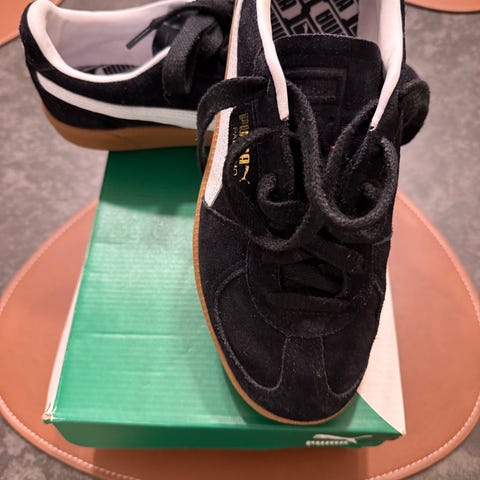 Puma sneakers i grå og hvid. Skoene har snørelukning og kraftig ydersål med mønster for godt fodfæste. Overdelen er i en kombination af tekstil og syntetiske materialer. Størrelse 43. Velegnet som hverdagssko eller til let træning og fritidsbrug.