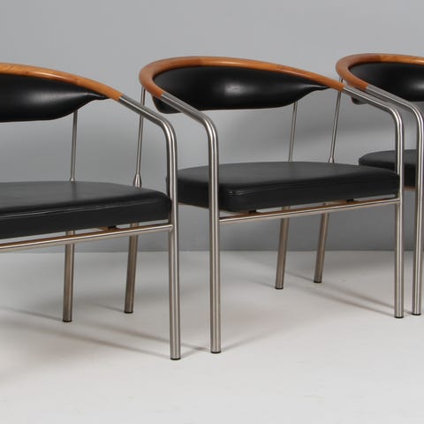 Henrik Tengler to personers sofa med stel af børstet stål. Kopstykke af valnød. Original betrukket med sort læder. Model Chairman, fremstillet hos One Collection. H. 70/41 B. 133 D. 60 cm. Pris pr stk