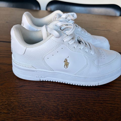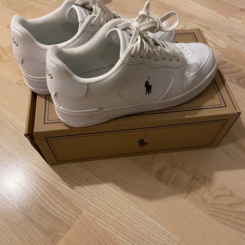 Polo Ralph Lauren sneakers i str. 42. Modellen er en klassisk lav sneaker i hvid med snørelukning. Skoene har Polo-logo på siden og hælen. Overdelen fremstår i glat materiale med gummisål, velegnet som hverdagssko.