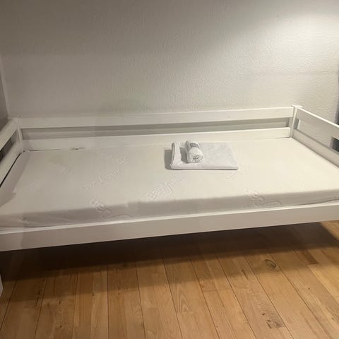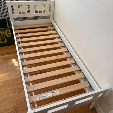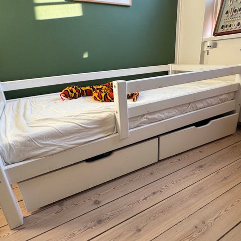 Manis-h juniorseng 160x90 fra trævarernes. Næsten alle dele til at gøre til halvhøj seng. Har ikke billede af samlet seng. Kun fra nettet. Se anden annonce, hvis afhentning i dag gives væk