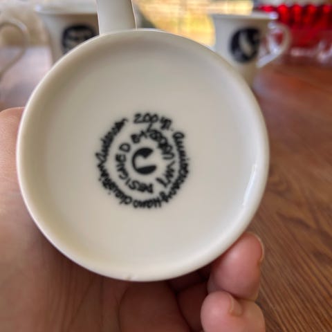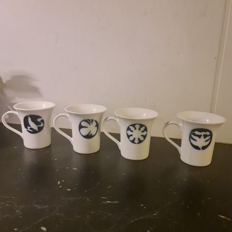 Rosendahl H.C. Andersen The Nightingale krus i hvidt porcelæn med mørkeblåt nattergal-motiv på siden. Krusene har klassisk, let udadbuet form med hank. Velegnet til varme drikke som kaffe, te eller kakao. Designet fremgår som en del af H.C. Andersen “The Nightingale” stellet, som vist på æsken på billedet.