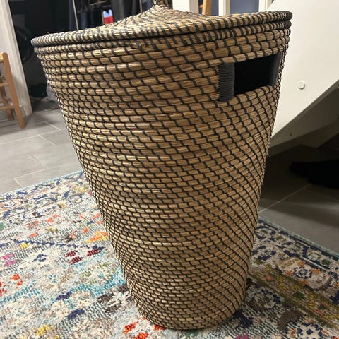 Indvendigt er der to håndtag beklædt med reb, som gør den nem at løfte og flytte. Kurven er velegnet til brug i hjemmet, f.eks. i soveværelse, badeværelse eller bryggers.