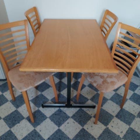 Spisebord, 4 stole og bænk