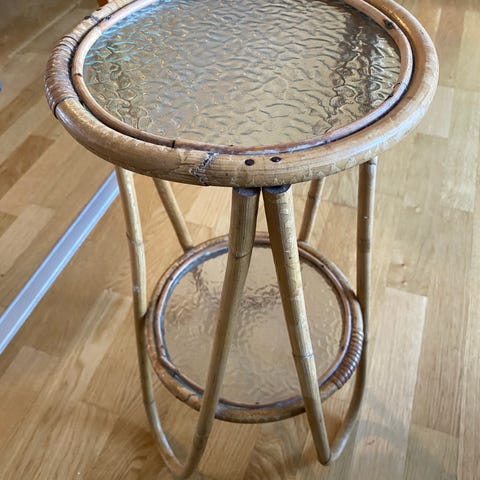 Retro Blomsterbord i bambus med glasplade.
