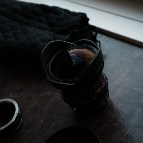Blazar Anamorphic 45mm kameralinse, med silver flare.