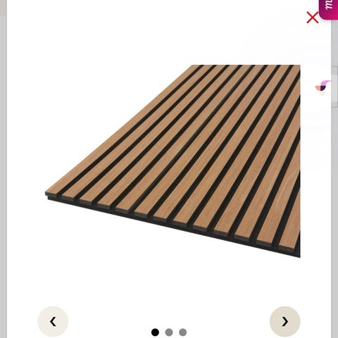 Akustikpanel vægpanel, 61 cm x 240 cm, med trælameller og grå filtbaggrund. Panelet består af smalle, parallelle lameller i træ monteret på en akustikdæmpende filt. Egnet til montering på væg eller loft for at forbedre rums akustik og give et ensartet, moderne udtryk. Kan anvendes i stue, kontor eller andre opholdsrum, hvor der ønskes lydreduktion og dekorativ beklædning.