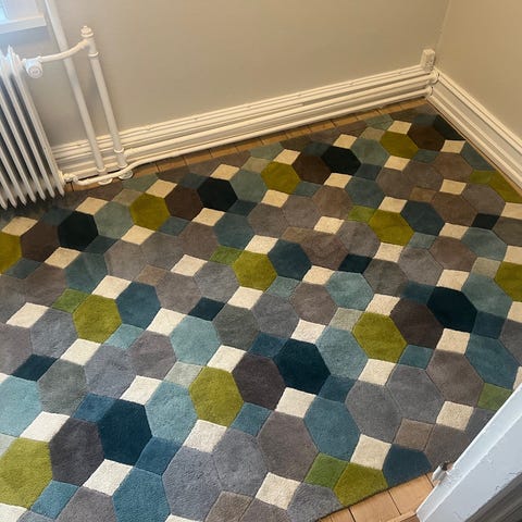 Smukt tæppe i 100% uld. Kvadratisk - så perfekt under fx et rundt bord.