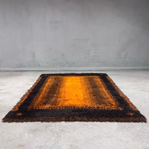 Tæppet har været brugt et showroom med ekslusive design varer. Øjet fanger farven øjeblikkeligt og kvaliteten har gjort, at den i dag står flot og den gule farve stadig fanger ens opmærksomhed.