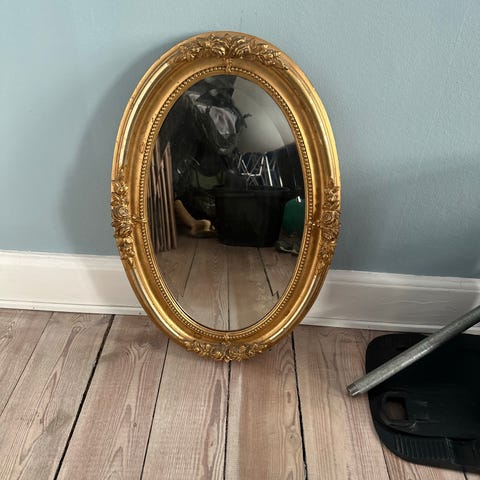 Virkelig smukt fransk-inspireret guld spejl som er købt brugt for mange år siden. Har nogle virkelig smukke detaljer og fejler ingenting. Der er kun en lille flig som er faldet af rammen (se billede).