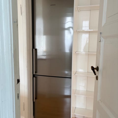 Køle-fryseskab i hvidt design. Skabet har køledel øverst med flere hylder og dørhylder til opbevaring af madvarer og drikkevarer. Nederst er der frysedel med hylder og bakker til frosne varer. Egnet til placering i køkken eller bryggers, hvor der er behov for kombineret køl og frys i ét skab.