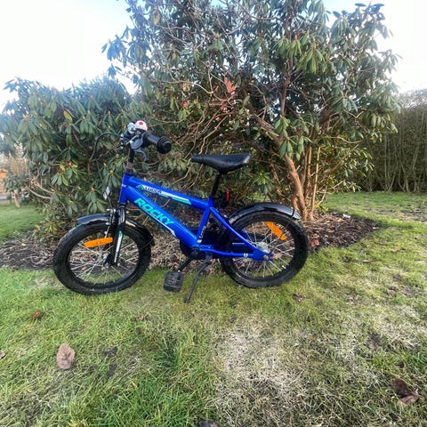Børnecykel passer til 4-5 år. Cyklen har turkis stel med grønne detaljer. Velegnet som børnecykel i overgangsfasen mellem mindre løbecykel og større juniorcykel. Velholdt men med lidt rust host og pist men eller flot og har nogle gode år tilbage.