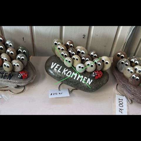 Skulptur i sten med flere udskårne ansigter. Værket fremstår i naturlige grå nuancer, hvor ansigterne er integreret i den organiske stenform. Egnet som dekorativ kunstgenstand til indendørs udsmykning, f.eks. på hylde, bord eller i montre. Materialet giver skulpturen et rustikt og tekstureret udtryk.