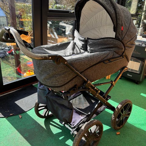 Odder barnevogn sort - med sele, regnslag og myggenet
