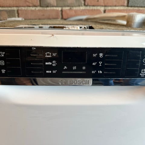 Bosch underbygget opvaskemaskine i hvid. Modellen er beregnet til montering under bordplade og har frontbetjening med display og programknapper øverst på lågen.