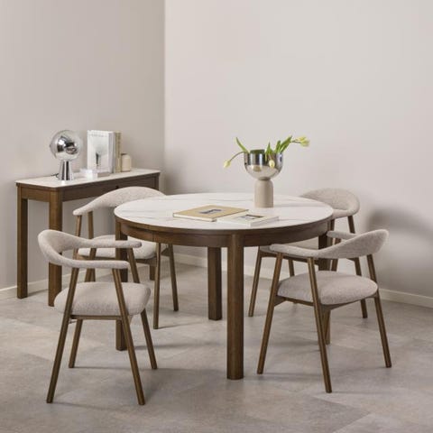 Søgeord: Spisebord , Rundt spisebord , Marmor look , Keramik look