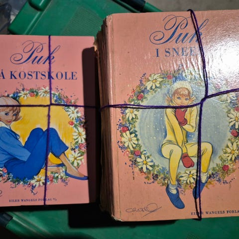 De lyserøde Pukbøger og bind 31 og 32 i moderne oplæg. Alle bind fra 1-32. Udenpå er de meget elsket, men indeni er de i fin stand.