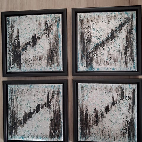 2 stk. Turkis, sort, sølv og glimmer akryl billeder.