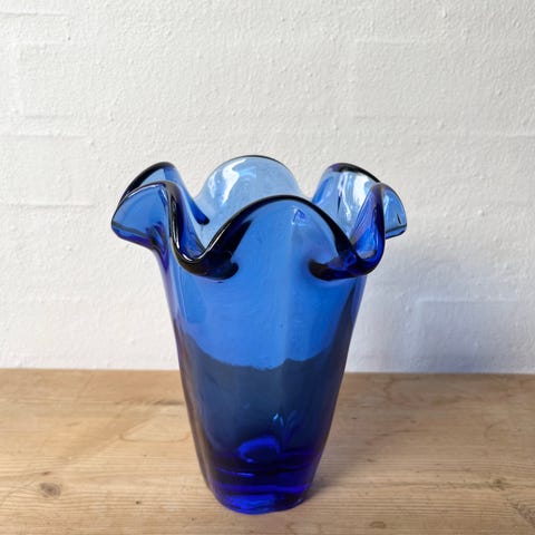 Glas, Vase, Meget smuk blå retro vase, ca23 cm høj. Ingen skår eller det mindste brugstegn.
