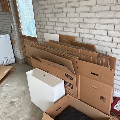 Store flyttekasser i brun pap. 15xrøverkøb 21x Harald Nyborg 10xdiv. Samlet 400,- afhentes i Virum.