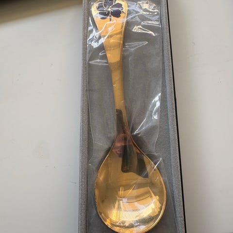 Georg Jensen 1980 årsske i sølvplet med blå emalje på skaftet. Skeen leveres i original æske med årstal 1980 angivet på emballagen. Velegnet som samlerobjekt eller mindeske fra året 1980.