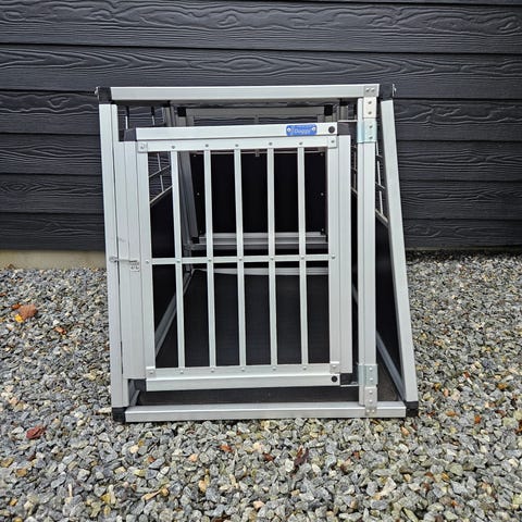 Transportbur i hvidt fra Dogman. Til mindre hunde op til 5kg. Str. Small. Måler 47,5x31x39cm. Fremstår som nyt uden brugsspor. Let at klappe sammen.
