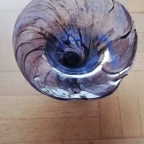 Oval jardiniere i blåt presglas fra Fyens Glasværk – model Rolf, nr. 846
