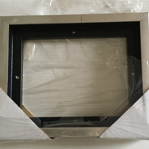 sølv, sort, grå stref af rød akryl billede i svæveramme.
