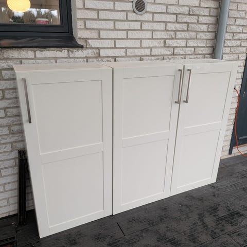 Højskabe med hylder og en skuffe, sokkel højde 19 cm