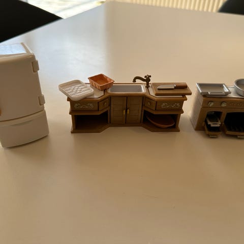 Sylvanian Families køjeseng legetøjsmøbel i plast med tre senge i højden. Sættet omfatter en hvid sengestel med dekorative detaljer samt tre madrasser/dyner i forskellige farver. Møblet er egnet som tilbehør til Sylvanian Families figurer og kan bruges i dukkehus eller som del af en større samling af Sylvanian Families møbler og tilbehør.