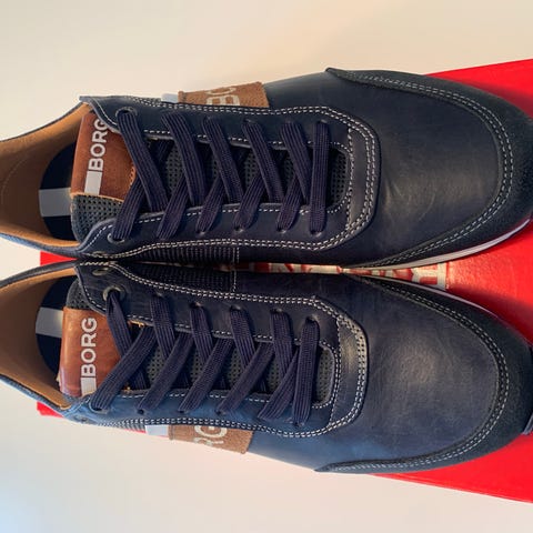 Björn Borg sneakers i størrelse 44. Højskaftet model i sort med hvid sål og lys indvendig foring. Snørelukning foran og trækstrop bagpå. Velegnet som hverdagssko i køligere vejr.