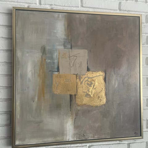 Guld, turkis, grå, sort akryl billede I svæveramme.