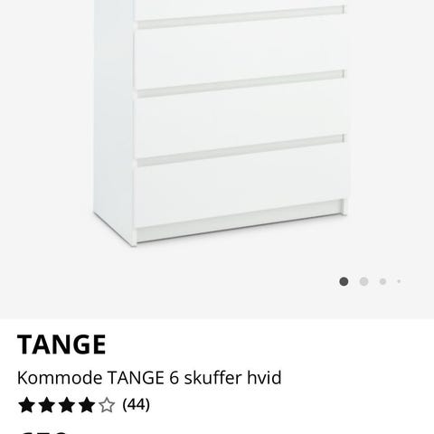 Hvid kommode fra Jysk (Tange) med 6 skuffer.