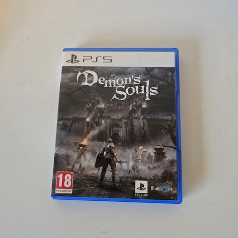 Demon's Souls PS5 spil. Fysisk udgave i standard PS5-cover. Action-rollespil med PEGI 18-års aldersmærkning. Velegnet til PlayStation 5 konsol med understøttelse af PS5-funktioner som forbedret grafik og hurtige indlæsningstider.