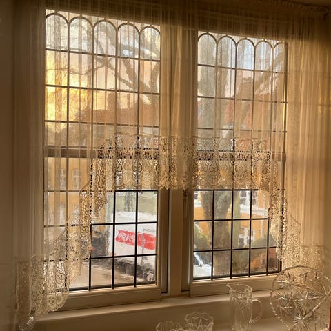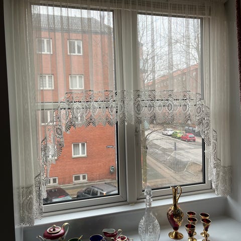 Giv dit hjem et strejf af fransk landstil eller klassisk romantik med disse to flotte gardiner i Guipure blonde.