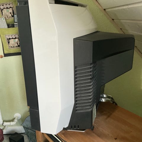 Et af de populære retro Panasonic CRT TV. Panasonic TZ-28CK1F. Har ikke fjernbetjeningen. Et TV jeg har arvet og sidst det blev brugt virkede det fint. Kan afprøves inden hvis du har et Scart stik. Har nogle mærke (se billeder).