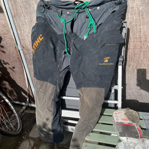 Stihl Dynamic C2-serien, skære/sikkerheds/arbejdsbukser i størrelse XL (gr. 58/60). Bukserne er i sort med orange detaljer og har elastisk talje. Modellen er beregnet til en personhøjde på ca. 188-194 cm og livvidde ca. 104-114 cm ifølge mærkningen. Velegnet til skov- og havearbejde. Bukserne har flere lommer
