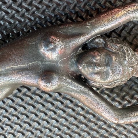 Njal oplukker i bronze med reliefmotiv af tennisspiller. Oplukkeren er udført i massiv bronze og måler ca. 18 cm i længden. Forsiden har en detaljeret figur, bagsiden er glat med indgraveringen "Njal Bronze". Velegnet som funktionel oplukker eller som dekorativt samlerobjekt med sportsmotiv.